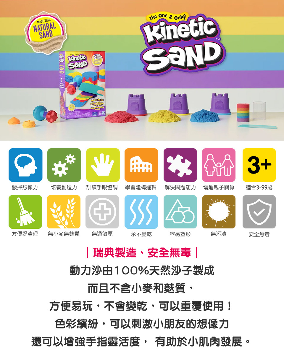神奇的 Kinetic Sand 動力沙~100%安全無毒,通過台灣及歐美國家安全玩具認證。好清理、柔軟、延展性佳、易塑形,一玩就上癮,千變萬化任你玩,讓愛玩沙的小孩,安全的在家享受玩沙的樂趣!