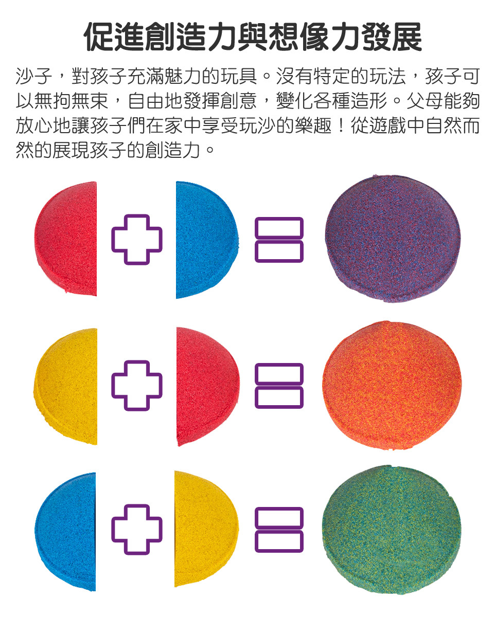 沙子,對孩子充滿魅力的玩具。沒有特定的玩法,孩子可以無拘無束,自由地發揮創意,變化各種造型。父母能夠放心地讓孩子們在家中享受玩沙的樂趣!從遊戲中自然而然的展現孩子的創造力。