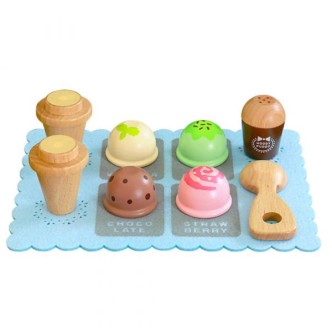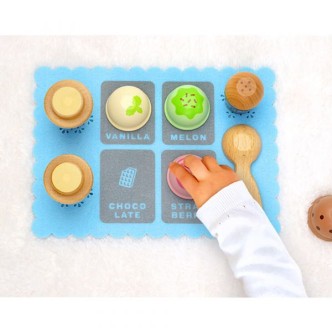 從小孩切入點開發的安全玩具,親子共樂扮家家酒Woody Puddy木玩,超可愛的造型設計,讓寶貝玩出對食物的興趣!此組冰淇淋玩具組可長齡使用,1歲半的小小孩可透過重複動作和擺放,得到成就感和樂趣,到了2~3歲,滿足寶貝角色扮演的慾望,就用快樂回憶填滿孩子的童年!